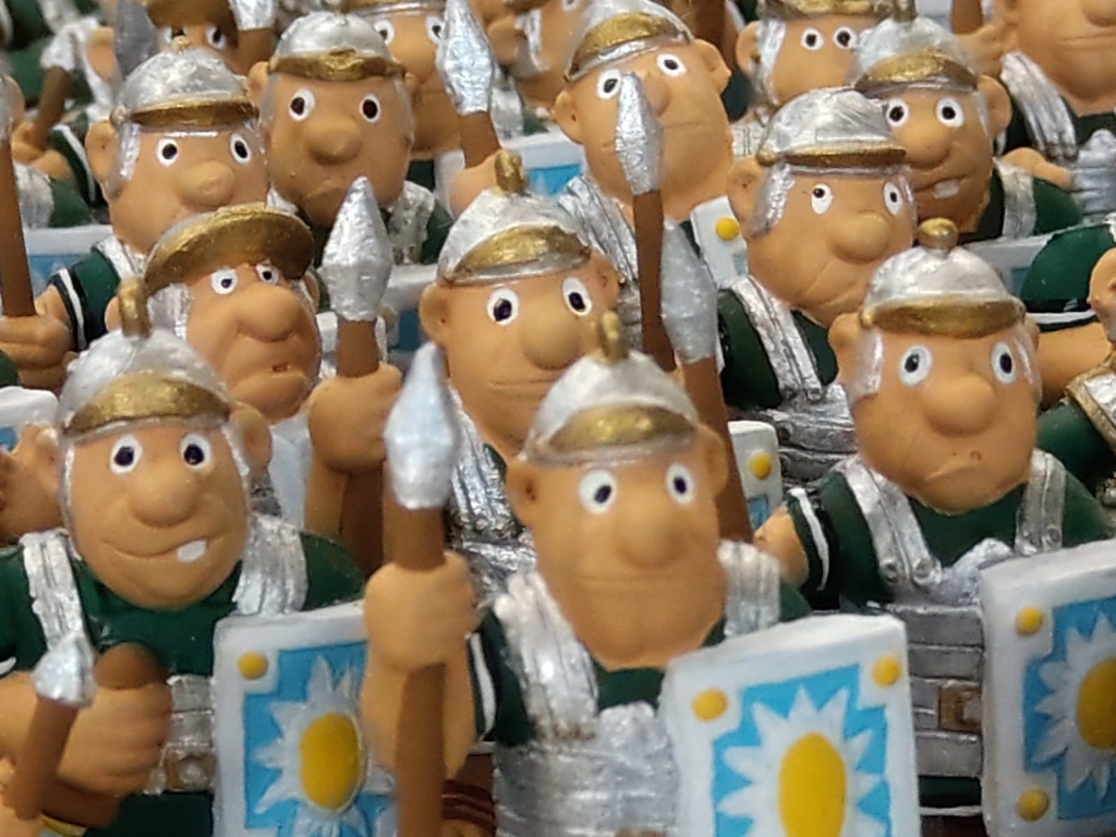 ich war gestern in Lingen auf einer Modellbau-Ausstellung, bei der ein Modellbauer seine Kaugummifiguren-Armee ausgestellt hat, sehr imposant. Außer den Römern, er hat mittlerweile über 500 davon bemalt, hat er noch einige andere tolle Kreationen erstellt, dies kann man in seinem Blog nachlesen: