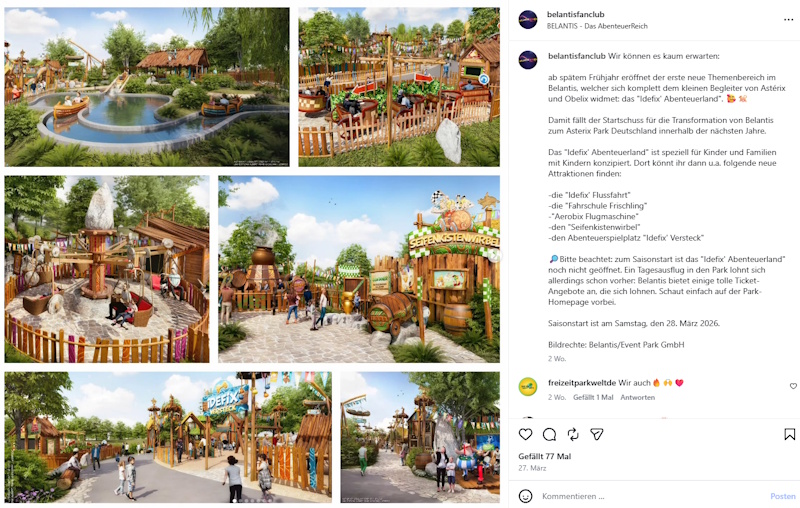 Es gibt auf Insta einen "belantisfanclub", der u.a. regelmäßig Updates zu den Bauarbeiten verschickt. So soll das Idefix-Abenteuerland ab dem späten Frühling aussehen. Zielgruppe sind Familien mit Kindern von drei bis acht Jahren: