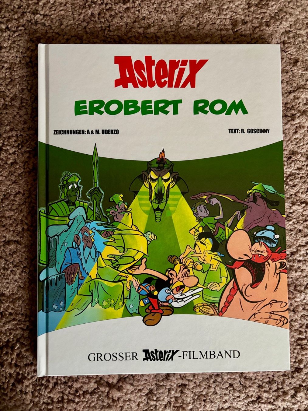 Es gibt eine Comic-Fassung des Films "Asterix erobert Rom" (frz.: "Les 12 travaux d'Astérix" = Die 12 Prüfungen des Asterix), die von Marcel Uderzo gezeichnet worden sein soll. Sie ist auf Deutsch nie in Albenform und auch nie in kolorierter Fassung erschienen (sondern nur in schwarzweiß in dem Comic-Magazin Comixene). Deshalb ist das Begehren der Fans nach einer schönen Ausgabe dieses Comics relativ groß, was zu den einen oder anderen Eigenkreationen anregen kann. In Frankreich gab es auch schon solche Alben im Selbstverlag, weil auch in Frankreich nie ein Album des Comics erschienen ist.