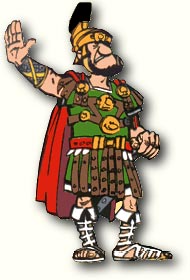 Der Zenturio Julius Pompilius meldet auf Seite 6 des Abenteuers "Asterix der Gallier" die Rückkehr der Patrouille, die den nicht unbedingt zahlenmäßig überlegenen Angreifern deutlich unterlegen waren. Genau genommen waren es nämlich nur einer, und dieser noch nicht einmal sehr groß.