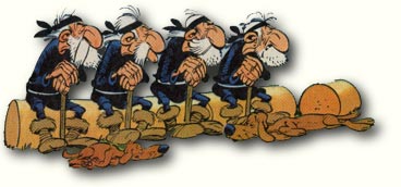 Während nur einer der vier mit dem Namen "Knackerix" bekannt ist, suchen sie sich vor den Toren von Aleria ein übersichtliches Plätzchen und finden, dass den Anführern der Sippen jeder Sinn für Pünktlichkeit fehle. Reisende der Mittelmeerinseln kennen das Bild der in Gruppen miteinander diskutierenden Alten.