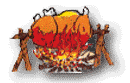 Das Festbankett ist nun offensichtlich mitten im Dorf gelegen, die gebratenen Wildschweine drehen sich in der Bankettmitte am Spieß.