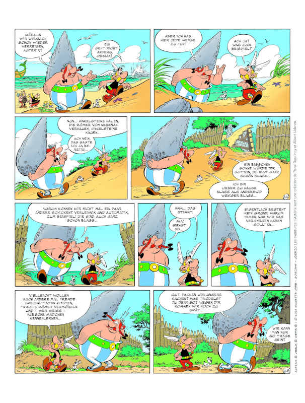 Im Dezember 2024 erschien zur Ankündigung des 41. Asterix-Abenteuers "Asterix in Lusitanien" ein einseitiger Comic, in dem Asterix und Obelix am Strand einen Dialog führen, dass sie wohl wieder verreisen müssen. Sie deuten auch an, dass durchaus auch mal andere Gallier geschickt werden können, beispielsweise Verleihnix und Automatix. Kenner hatten nach diesen Panels schon eine Reise nach Lusitanien in Verdacht.