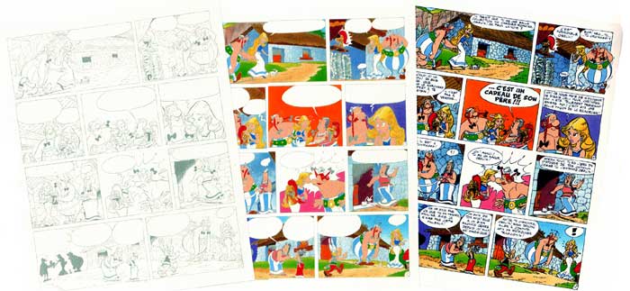 In dieser Phase werden auch die Texte in die Sprechblasen der Zeichnungen eingebracht. Die Mitarbeiter der entsprechenden Verlage steuern dabei die jeweilige Sprachversion bei, damit die Dialoge auch in allen Ländern verstanden werden. Bei jeder Version wird dabei im Digitalverfahren der französische Text durch die entsprechende Sprache ersetzt.