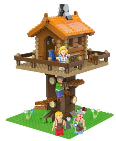 Das Set "Baumhaus Troubadix" wird zu einem Preis von etwa 15 Euro angeboten und besteht aus ingesamt 575 Teilen. Das Baumhaus ist mit abnehmbarem Dach ausgestattet und auf einem Baumstamm mit Wendeltreppe befestigt. Es beinhaltet ein Regal und ein Bett im Haus sowie den Figuren Troubadix mit Harfe, Obelix mit Wildschweinkeule, Majestix mit Schwert und Automatix mit Hammer.