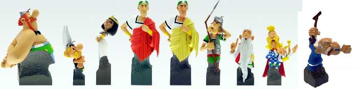 Attakus, ein französischer Hersteller von hochwertigen Kunstharz-Figuren, erwarb 2009 die Rechte der Edition Albert-René für die Herstellung von Kunstharz-Figuren mit Asterix-Motiven. Neben einem zum 50. Asterix-Geburtstag veröffentlichten Diorama erschienen seit 2010 zwei Serien mit verschiedenen Büsten von Charakteren aus der Asterix-Serie. Bereits 1991 war eine Asterix-Büste von Leblon-Delienne erschienen.