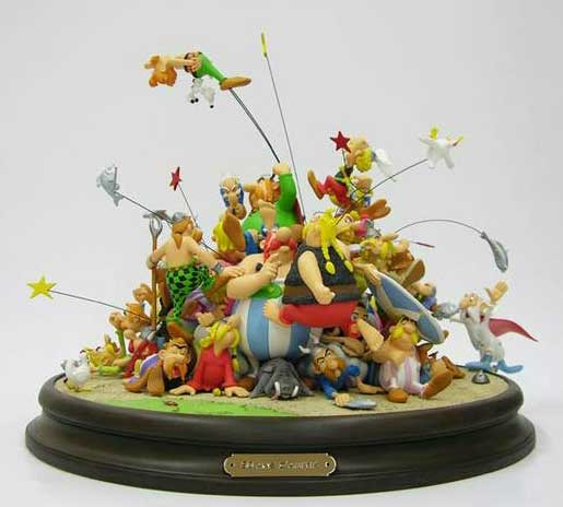 Attakus, ein französischer Hersteller von hochwertigen Kunstharz-Figuren, erwarb 2009 die Rechte der Edition Albert-René für die Herstellung von Kunstharz-Figuren mit Asterix-Motiven. Noch bevor 2010 und 2011 verschiedene Büsten mit Motiven aus der Asterix-Serie erschienen, wurde zum 50. Asterix-Geburtstag ein 9 Kilogramm schweres, 42 x 37 x 31 Zentimeter großes Diorama veröffentlicht, das imposant eine Fischschlacht des Dorfes mit vielen Charakteren in einer Limitierung von 500 Exemplaren darstellt (Detailansicht). Der stolze Neupreis betrug 1.500 Euro. Das Zertifikat, das man als Käufer mit dem Diorama erhielt, ist ebenfalls sehenswert.