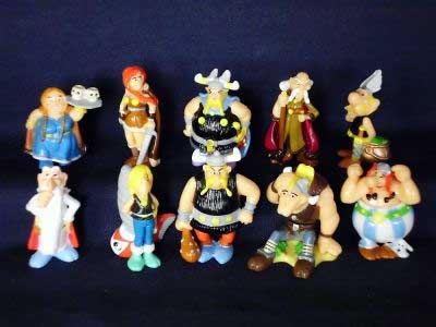 Zum Kinostart des Films "Asterix und die Wikinger" erschien 2007 bei Ferrero als Beilage der Kinder-Überraschungseier die gleichnamige zehnteilige Figurenserie (Übersicht der Figuren). Zu jeder Figur gehörte ein Beipackzettel, der eine Übersicht über alle erschienenen Figuren der Serie bietet. Es ist außerdem eine 6er-Packung im Handel erhältlich gewesen, die aufgeklappt als Diorama den Figuren einen würdigen Rahmen verpasste. Bereits 1975, 2000, 2009 und 2012 sind weitere Asterix-Serien in Überraschungseiern erschienen. Zur dieser Serie gehören folgende Figuren (die Namen entsprechen den Angaben auf dem Beipackzettel):