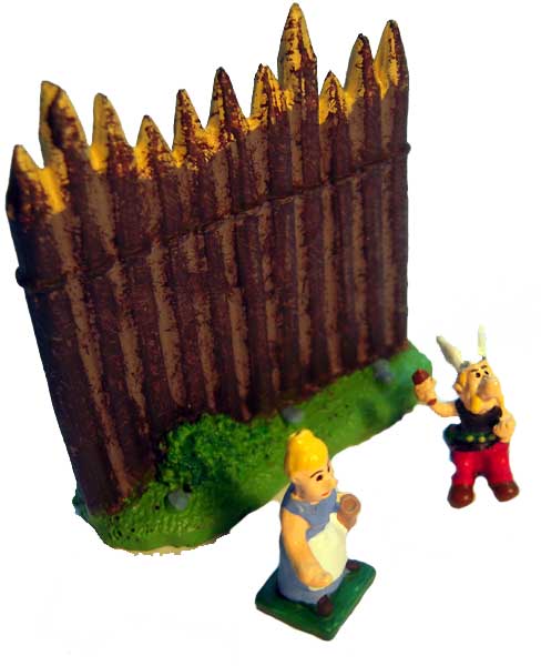 Diese etwa 1,5 cm großen Figuren von Asterix und einer Kellnerin aus Metall sowie die Palisade aus Resin erschienen im Rahmen der Sammelserie von Hachette "Das gallische Dorf des Asterix" im Februar 2014 in der Ausgabe 54. Die Sammelserie konnte mit allen Ausgaben (60 Hefte mit etwa 200 Teilen) zu einem Gallierdorf kombiniert werden konnten.
