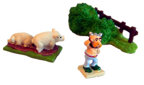 Diese etwa 2 cm große Figur eines Galliers aus Metall wie auch die beiden Schweine und der Busch mit Zaun aus Resin erschienen im Rahmen der Sammelserie von Hachette "Das gallische Dorf des Asterix" ab Mai 2013 in der Ausgabe 17. Die Sammelserie konnte mit allen Ausgaben (60 Hefte mit etwa 200 Teilen) zu einem Gallierdorf kombiniert werden konnten.