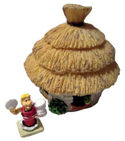 Diese etwa 2 cm große Figur von Gutemine beim Bankett aus Metall sowie die runde Hütte aus Resin erschienen im Rahmen der Sammelserie von Hachette "Das gallische Dorf des Asterix" im November 2013 in der Ausgabe 43. Die Sammelserie konnte mit allen Ausgaben (60 Hefte mit etwa 200 Teilen) zu einem Gallierdorf kombiniert werden konnten.