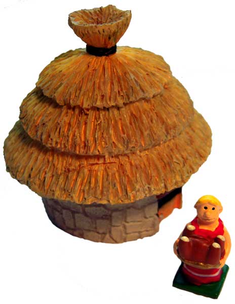 Diese etwa 1,5 cm große Figur einer Kellnerin aus Metall sowie die Hütte aus Resin erschienen im Rahmen der Sammelserie von Hachette "Das gallische Dorf des Asterix" im März 2014 in der Ausgabe 57. Die Sammelserie konnte mit allen Ausgaben (60 Hefte mit etwa 200 Teilen) zu einem Gallierdorf kombiniert werden konnten.