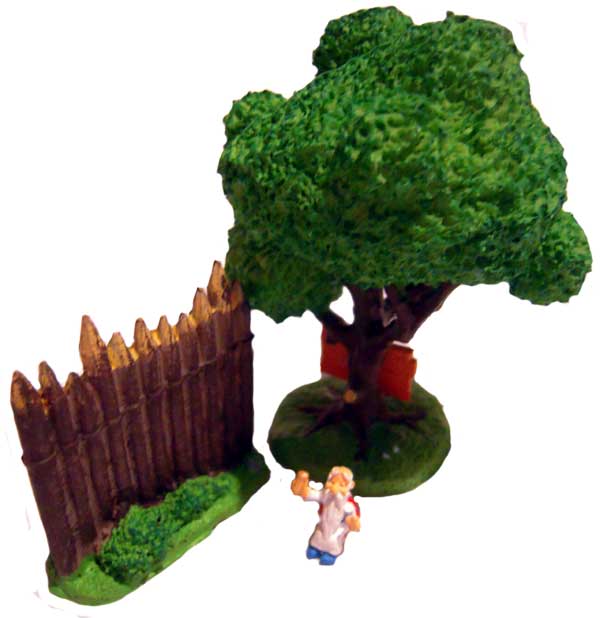 Diese etwa 1,5 cm große Figur von Miraculix beim Bankett aus Metall sowie der Baum der Schule und die Palisade aus Resin erschienen im Rahmen der Sammelserie von Hachette "Das gallische Dorf des Asterix" im Januar 2014 in der Ausgabe 50. Die Sammelserie konnte mit allen Ausgaben (60 Hefte mit etwa 200 Teilen) zu einem Gallierdorf kombiniert werden konnten.