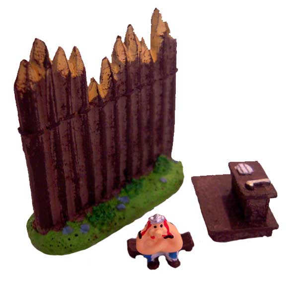 Diese etwa 1,5 cm große Figur von Obelix in der Schule aus Metall sowie der Schreibtisch des Lehrers und eine Palisade aus Resin erschienen im Rahmen der Sammelserie von Hachette "Das gallische Dorf des Asterix" im Dezember 2013 in der Ausgabe 44. Die Sammelserie konnte mit allen Ausgaben (60 Hefte mit etwa 200 Teilen) zu einem Gallierdorf kombiniert werden konnten.