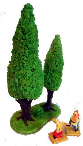 Obelix mit Tanzpartnerin und zwei Zypressen