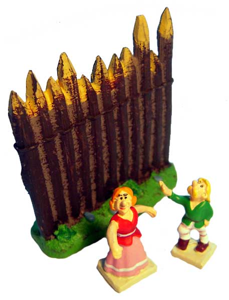 Diese etwa 1,5 cm großen Figuren einer Tänzerin und ihres Tanzpartners aus Metall sowie die Palisade aus Resin erschienen im Rahmen der Sammelserie von Hachette "Das gallische Dorf des Asterix" im Februar 2014 in der Ausgabe 55. Die Sammelserie konnte mit allen Ausgaben (60 Hefte mit etwa 200 Teilen) zu einem Gallierdorf kombiniert werden konnten.