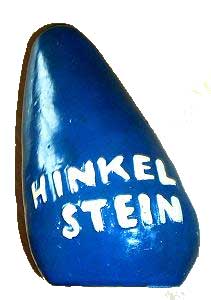 Hinkelsteine als Spardosen aus Keramik wurden sehr wahrscheinlich im Auftrag von "Harlekin Geschenke" im Jahr 1989 hergestellt - darauf deutet ein Aufkleber unter dem Hinkelstein hin. Insgesamt sind vier Ausführungen bekannt: Ein schwarzer Hinkelstein in großem Format (Abbildung rechts), in kleinem Format und ein dunkelroter Hinkelstein mit schwarzer Schrift, sowie ein dunkelblauer mit weißer Schrift. Die Funktion einer Spardose hat nur die große Ausführung, alle kleinen Versionen dienen lediglich Dekorationszwecken.