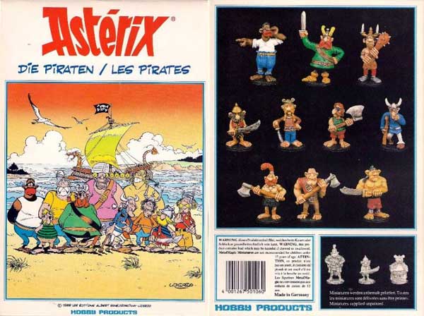 Die Serie besteht aus den im Jahr 1990 erschienen 10er Sets Römer (C1702), den hier abgebildeten Piraten (C1703, Verpackungsansicht) und den Galliern (C1701). Majestix auf seinem Schild mit Trägern und Obelix mit Hinkelstein, die Figuren der Ägypter und die Briten wurden ab 1992 ausschließlich als Einzelfiguren angeboten.