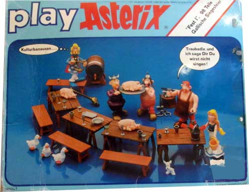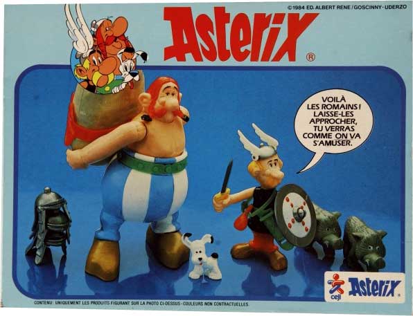 In den Jahren 1980 und 1981 produzierte die Firma Toycloud unter dem Namen "playAsterix" eine Kollektion von Figuren, die teilweise mit reichlich Zubehör in blauen und weißen Verpackungen angeboten wurden. Die weißen Verpackungen entsprechen der ersten in Deutschland erschienenen Serie, die in den Jahren 1980 bis etwa Ende 1982 durch das Hamburger Unternehmen "Bienengräber" nach Deutschland importiert wurden. Ab 1983 wurden die Figuren durch Ceji nach Deutschland importiert.