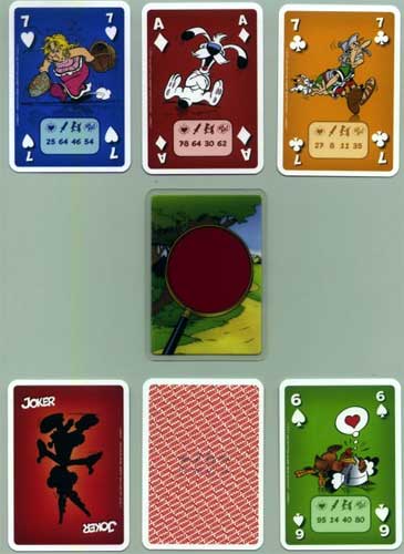 Die erste Variante "Trumpfspiel" entspricht in etwa dem oben genannten Prinzip. Das "Missionsspiel" erweitert dieses Prinzip noch mit einem Code, der in schwarzer Schrift auf der Rückseite einer jeden rot bedruckten Karte steht. Dieser Code kann mittels einer roten Folie gelesen werden, sie wird erst sichtbar, wenn man diese als Lupe gestaltete Spezialkarte darüber hält. Diese geheime Botschaft gilt es zu entschlüsseln und damit eine Mission zu gewinnen. Das Spiel selbst kommt in einer einfachen Kartenfaltschachtel daher, die Karten sind mit den Charakteren der Asterix-Serie bedruckt und die mehrsprachige Anleitung hat Beipackzettelformat.