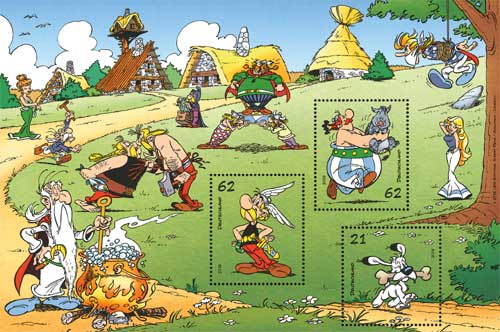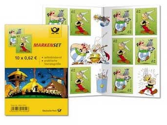 Am 1. September 2015 erschien von der Deutschen Post erstmals ein Asterix-Briefmarkenblock mit drei unterschiedlichen Motiven. Neben dem Block zum Preis von EUR 1,45 mit den drei Briefmarken Asterix (62 Cent), Obelix (62 Cent) und Idefix (21 Cent) gab es auch ein Markenset zu 10 Marken mit jeweils fünf Asterix- und Obelixmarken zu EUR 6,20 (10 x 62 Cent).
