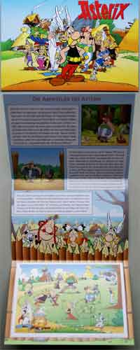 Im Zusammenhang mit dem Erscheinen der Briefmarken vertrieb die Deutsche Post auch Taßen und ein Schreibset. Im Taßen-Set "Asterix & Obelix" bestehend aus zwei Taßen werden die Motive "Asterix Paff!" und "Obelix Tchoc!" der Porzellan-Taßen von Könitz angeboten. Zudem bot die Post auch jeweils ein Packset als auch ein Plusbrief-Set mit Asterix-Motiven zum Verkauf an.