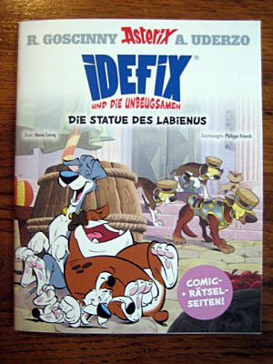 Der Idefix-Comic im Format A5 enthielt die Geschichte "Die Statue des Labienus", die zum Zeitpunkt des Erscheinens dieses "Family-Packs" noch nicht in Buchform in der oben genannten Serie veröffentlicht war. Die 32 Seiten enthalten zudem zusätzliche Rätselseiten.
