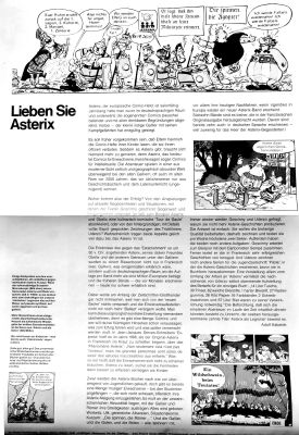 Im Magazin "Bild der Zeit" erschien in der Ausgabe Nr. 12/1971 ein vierseitiger Asterix-Bericht mit einem ausklappbaren Doppel-Farbposter "Asterix und Obelix contra Establishment 50 v. Chr." und doppelseitiger bebilderter Dokumentation unter dem Titel "Lieben Sie Asterix" von Adolf Kabatek (Artikelauszug).