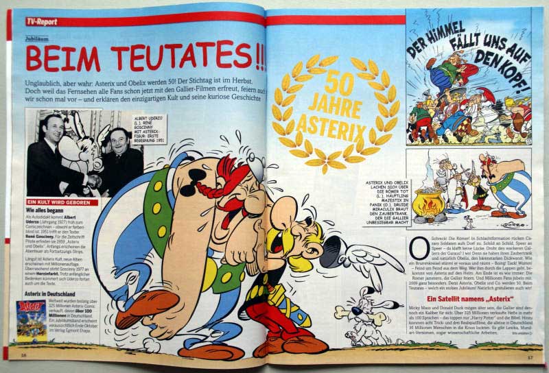 Zuletzt erschien in der Ausgabe 30 vom 17.7.2009 der Artikel "Beim Teutates!!! - 50 Jahre Asterix" zum 50. Asterix-Jubiläum. Der Autor Christian Dück hat sich für den reich bebilderten und dreiseitigen Artikel unter anderem mit Informationen aus dem Asterix Archiv bedient und zum Dank die Comedix-Internetadresse erwähnt. Der Text führt im Schnelldurchgang durch die Asterix-Geschichte von der Entstehung bis zum aktuellen Datum der Ausgabe.