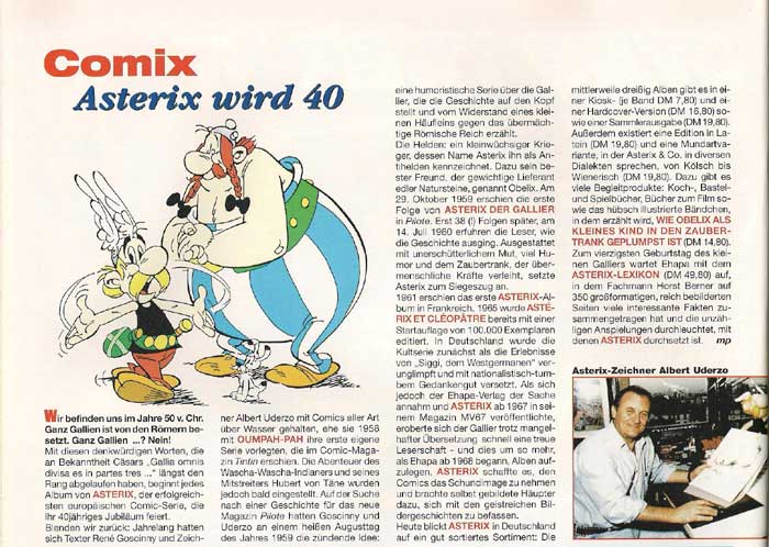 - Ausgabe 50 (März/April 1999): Asterix und Obelix gegen Cäsar (doppelseitiger Artikel, Abbildung)