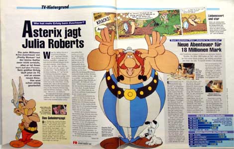 Die Ausgabe 11/1993 des Magazins "TV Guide" von der "TV Spielfilm Verlag GmbH" titelte in dem reich bebilderten Artikel "Asterix jagt Julia Roberts" und spielt dabei auf eine Auflistung der erfolgreichsten Filme in Deutschland an.