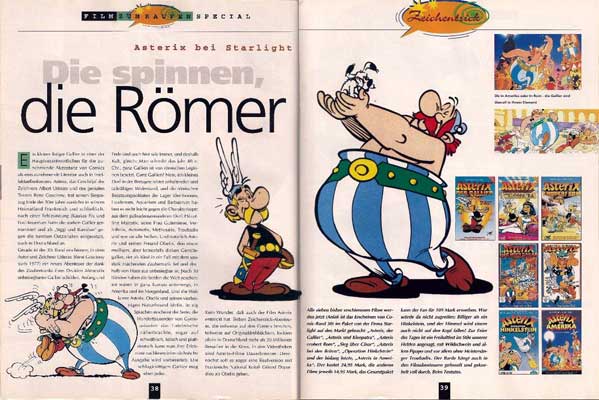 - 11/12 1996: im Rahmen eines Zeichentrick-Specials ein doppelseitiger, farbig bebilderter Beitrag zu den ersten sieben Asterix-Filmen auf VHS unter dem Titel "Asterix bei Starlight – Die spinnen, die Römer" auf den Seiten 38/39 (Abbildung)