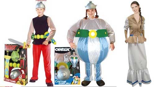 Bei dem in Italien ansässigen Unternehmen Widmann S.R.L. werden unter anderem drei Kostüme angeboten, die eindeutig Asterix (Abbildung rechts) und Obelix (Abbildung Motiv 1 und Motiv 2) zugeordnet werden können. Für die Firma vertreiben deutsche Importeure die Artikel auch an deutschsprachige Ladengeschäfte und Internetshops. Die Kostüme aus 100% Polyester werden in der Größe 50/52 angeboten. Ein Ladengeschäft, das Widmann-Produkte verkauft, befindet sich beispielsweise in Köln (Kostümausstatter "JOT Jelunge", Lindenstraße 52).