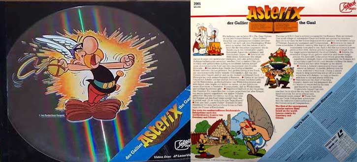 - "Asterix der Gallier" (Select) wurde im sogenannten CAV-Modus angeboten. Die Laufzeit des Films beträgt nach Angaben auf der Hülle 66 Minuten, mit monologer Tonspur (Abbildung LD-Hülle mit Rückseite).