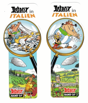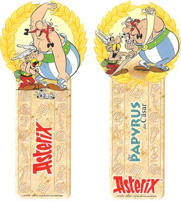 Bei Egmont Ehapa erschienen nach Veröffentlichungen neuer Asterix-Abenteuer auch Lesezeichen mit entsprechendem Motiv, die über den Ehapa-Shop zeitlich befristet gratis einem Kauf beilagen. Die Lesezeichen sind etwa 5 x 15 cm groß und aus laminierter Pappe. Folgende Lesezeichen sind bisher erschienen: