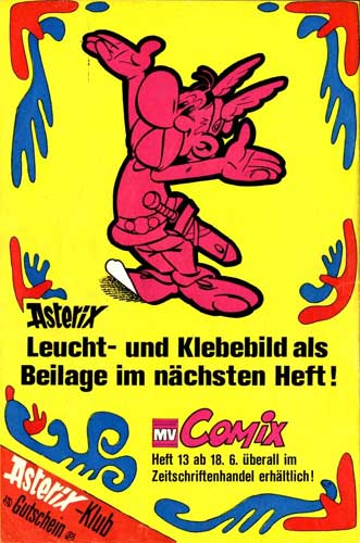 Außerdem als verlagsseitige MV-Beilagen bekannt sind Asterix-Abzeichen und Asterix-Filmankündigungen.