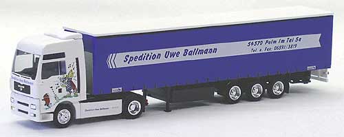 AWM Automodelle, ein Hersteller von Modellfahrzeugen, produzierte im Jahr 2004 für die Firma Ballman im Maßstab 1:87 eine Kleinserie von 10 verschiedenen MAN-Lastwagen mit Asterix-Motiven, die bedruckten Originalfahrzeugen der zwischenzeitlich insolvent gewesenen Spedition Uwe Ballmann nachempfunden sind. Die Modelle wurden in einer Auflage von je 50 Stück mit Auflieger in Einzelboxen zu einem Preis von ca. 20 € angeboten. Außerdem gab es eine inzwischen vergriffene Sonderauflage der Modelle von weiteren 50 Exemplaren (ohne Auflieger), die in zwei Holzkisten mit je 5 Motiven zu einem Preis von je 70 € zu haben waren. Die Serie umfaßt folgende Motive (Motivübersicht):