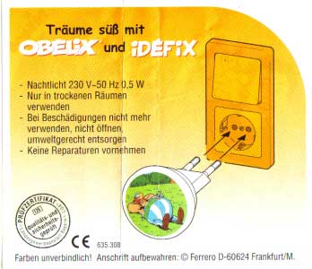 Diese Lampe, die als Nacht- bzw. Orientierunglicht dient, wurde 1991 vom Hersteller "ISOTRONIC" auf den Markt gebracht. Neben dem Motiv "Idefix" war auch "Asterix" und "Obelix" im Angebot (siehe Bild rechts). Die Lampen sind nicht mehr im Handel erhältlich, eine Neuproduktion ist nicht geplant.
