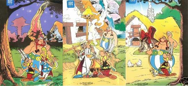 Die Vordergrundmotive der Karte sind aus Kunststoff gefertigt und fühlbar vom Untergrund abgehoben. Bei der abgebildeten Karten ist das bei Asterix, Obelix und Idefix der Fall.