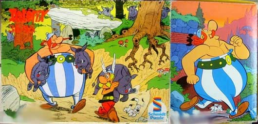 In den vergangenen Jahren sind immer wieder Puzzle mit Asterix-Motiven erschienen. 1975 veröffentlichte das Unternehmen "FX Schmidt" (der Gründer war Franz Xaver Schmid) mehrere Puzzle, bevor anschließend die Rechte zum Veröffentlichen von Puzzlen mit Asterix-Motiven von der Firma "Ravensburger GmbH" ausgeübt wurden. 1996 wurde F.X. Schmidt von Ravensburger übernommen und ist seitdem hundertprozentige Tochter des Unternehmens. Der Name F.X. Schmidt wird seit 2002 nur noch für Kinderbücher verwendet.