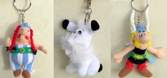 Das französische Unternehmen Nounours produzierte nicht nur Figuren aus Plüsch, sondern 2002 auch jeweils etwa 10 cm lange Schlüsselanhänger mit den Motiven Asterix, Obelix und Idefix (Motivübersicht).