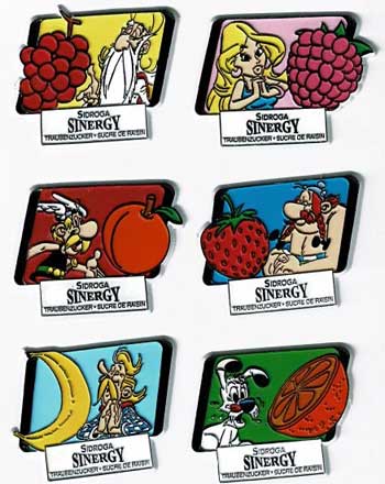 Von der Firma Sidroga Sinergy sind neben Metallpins auch eine Serie Kühlschrankmagneten erschienen. Die Motive entsprechen der zweiten sechsteiligen Pin-Serie (Motivübersicht). Die Magnete weisen allerdings auch Unterschiede zu den Pins auf. Zum einen ist die Oberfläche nicht glattlackiert, sondern die Linien sind erhaben. Das Material ist flexibel und besteht im Gegensatz zu den Pins nicht aus Metall. Die Lizenz der Magnete datiert von 1993, wie auf der Rückseite vermerkt ist, jedoch weist eine gedruckte Werbung auf den Lieferzeitraum der Magnete ab Januar 1995 hin. Die Magnete sind mit etwa 7 cm x 5 cm deutlich grösser als die Pins.