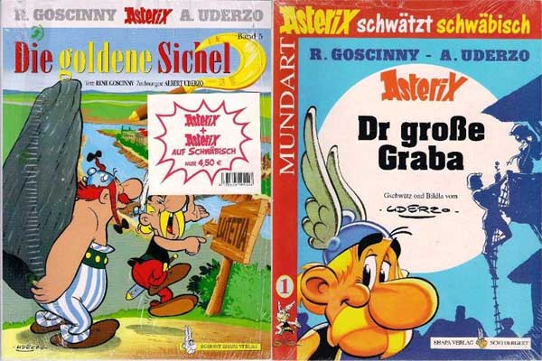- "Asterix + Asterix auf Schwäbisch", Preis: 4,50 €, Inhalt: ein beliebiger regulärer Asterix-Band und "Asterix schwätzt schwäbisch: Dr grosse Graba" (Abbildung).