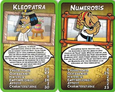 Schon vor einigen Jahren ist der Spieleverlag "Winning Moves" auf die Idee gekommen, u.a. die Eigenschaften von Charakteren aus der Asterix-Serie für den Supertrumpf zu verwenden. Dass Obelix bei "Prügelpower" ganz oben steht, Asterix eine überdurchschnittliche Gerissenheit attestiert wird oder Greulix in der Eigenschaft "Hinterlist" und Osolemirnix bei der Empfindlichkeit kaum zu schlagen sind, zeugt von der Fachkenntnis, mit der die Werte zusammengestellt wurden.