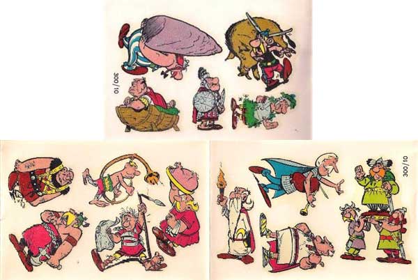 Später, vermutlich zu Beginn der 1970er Jahre, erschien in der Schweiz eine weitere Sammlung mit einem dreiteiligen Bilderbogen (Abbildung unten), der Abziehbilder aus den Alben "Asterix der Gallier", "Asterix und die Goten", "Asterix und Kleopatra" und "Der Kampf der Häuptlinge" enthält (Motivübersicht). Diese Abziehbilderserie mit dem Namen "Calcolux" wurde von der Firma "Jesco Imagerie" veröffentlicht. Die Rückseite enthält eine dreisprachige (Französisch, Italienisch, Deutsch) Gebrauchsanweisung.