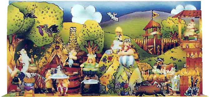 - Die Diorama-Bastelbögen "Die Gallier sind los..." von "Schrage Design" (Abbildung rechts) soll im Ausland erschienene Figurenserien beheimaten. Das Set wurde auf 999 Stück limitiert in der Vergangenheit für ca. 60 DM (etwa 31 EURO) angeboten.