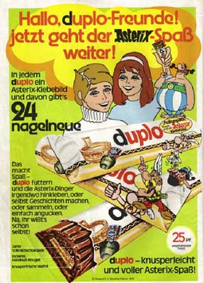 Nach dem Anfeuchtbildern aus dem Jahr 1973 ist ein Jahr später in den Duplo-Keksriegeln nochmals eine Serie mit 24 Bildern erschienen, die man unter Verwendung von Feuchtigkeit auf Oberflächen auftragen konnte (Werbeblatt). Mit den Bildern sollten eigene Comics gemacht und mit Texten versehen werden. Als Anreiz wurden den 100 besten Geschichten ein Preis versprochen. Im Unterschied zu den Tattoobildern wird das Aufkleben des Motivs nicht durch das Auftragen von Wasser auf die zu beklebende Oberfläche, sondern durch das Anfeuchten der Rückseite des Bildes ermöglicht.