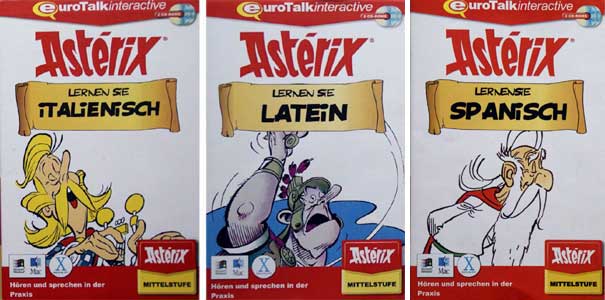 1996 sind erneut Sprachlernspiele von Eurotalk erschienen (Abbildung rechts oben). Sie wurden auf mehreren CD in verschiedenen Sprachen, unter anderem Deutsch, ausgeliefert. Ab 2003 erschien die Software in einer neuen Version mit erweitertem Umfang und einer neuen Verpackung (Abbildung unten), hier hat im Gegensatz zur vorherigen Serie jede Sprache ein eigenes Titelmotiv, beispielsweise Obelix für das Erlernen der deutschen Sprache. Diese Software versucht das Sprachenlernen zu einem nachhaltigen, effektiven und vor allem auch motivierenden und vergnüglichen Erlebnis zu machen. Sie können Ihre eigene Sprache aufzeichnen, in einer Hauptrolle an der Handlung teilnehmen oder Ihre Kenntnisse im Quiz-Bereich testen.