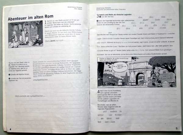 In dem von Jutta und Gerald Streer erarbeiteten DIN A4 Deutsch-Übungsheft "geradeaus PLUS sieben", das 1999 im Ernst Klett Schulbuchverlag Leipzig GmbH unter der ISBN 3-12-316760-7 erschienen ist, werden unter dem Titel "Abenteuer im alten Rom" auf 3 Seiten mit durchgehender Bezugnahme auf Asterix Grammatik-Übungsaufgaben zur Wiederholung der Regeln über verschiedene Wortarten gestellt. Es finden sich darunter auf dem Asterix-Hintergrund beruhende Übungstexte, als auch Schwarz-Weiß-Abbildungen aus den Comics.