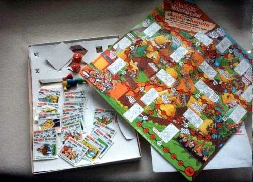 Bei "duplo+hanuta" erschien 1981 ein in kompletter Form abgepacktes Asterix-Würfelspiel von Ferrero, für das die spätere der beiden Sammelbilderserien verwendet wurde. Diesem Spiel gehörten das als Spielplan gestaltete Würfelbrett einschließlich der Spielwürfel und Spielfiguren sowie ein Satz aller Klebebilder an. Es war mit einem Klarsichtdeckel verschlossen, unter welchem sich ursprünglich auch ein Werbe-Einlageblatt zu diesem Aktionsangebot befand.